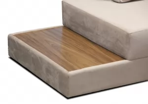 Caixade assento com percinta elástica padrão italiano, revestida com espuma depoliuretano densidade 28 e recoberto por manta de fibra.