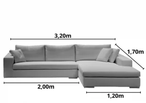 COMPRIMENTO SOFÁ MONTADO: 3,20 m x 1,70 m